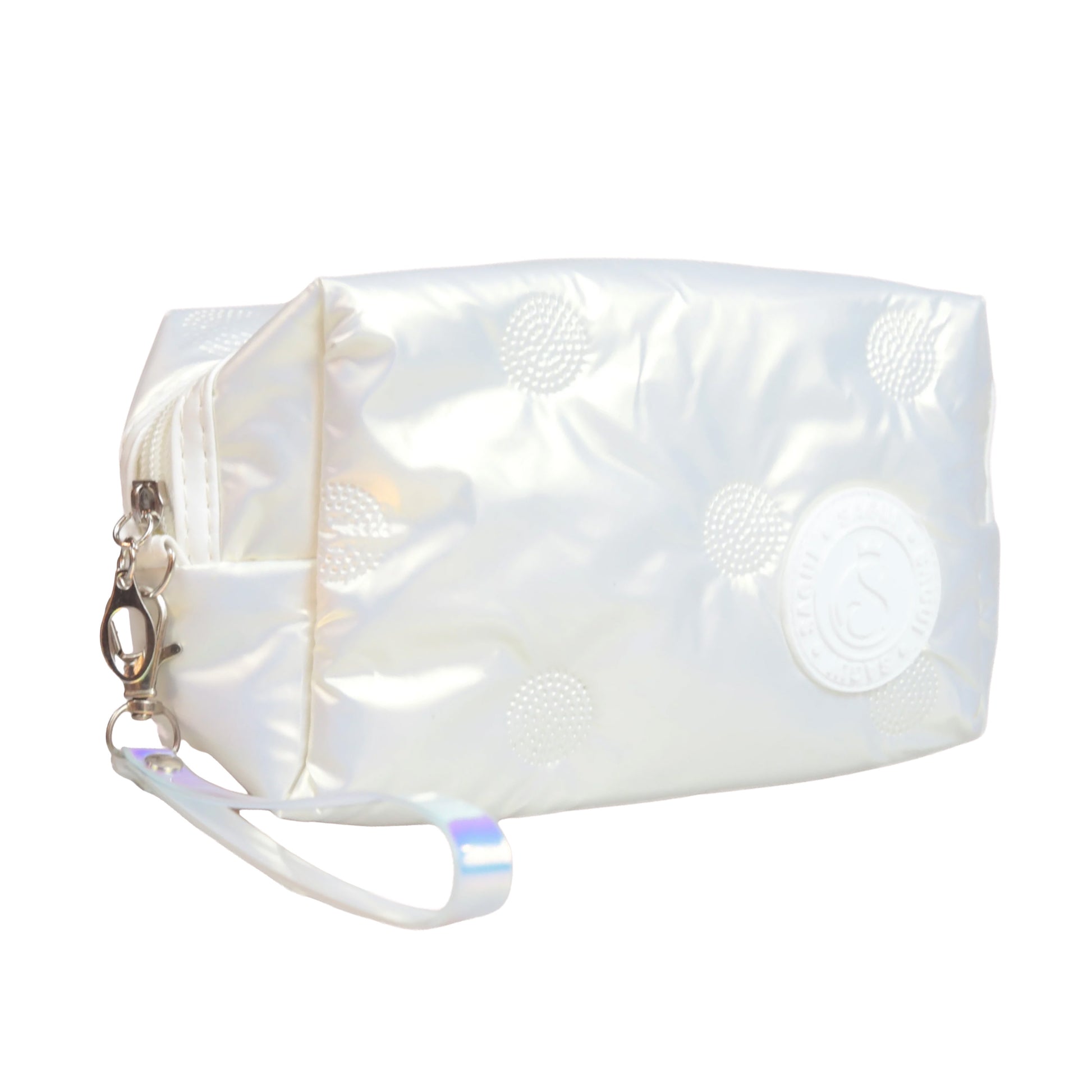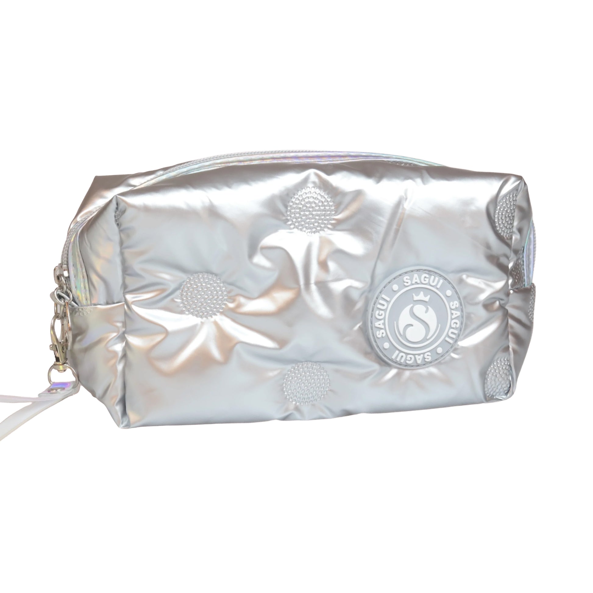 Perfecta si buscas practicidad y estilo. Esta cosmetiquera metálica es perfecta para organizar tus esenciales. Su interior amplio y estructurado te permite guardar maquillaje, skincare y accesorios de manera segura.