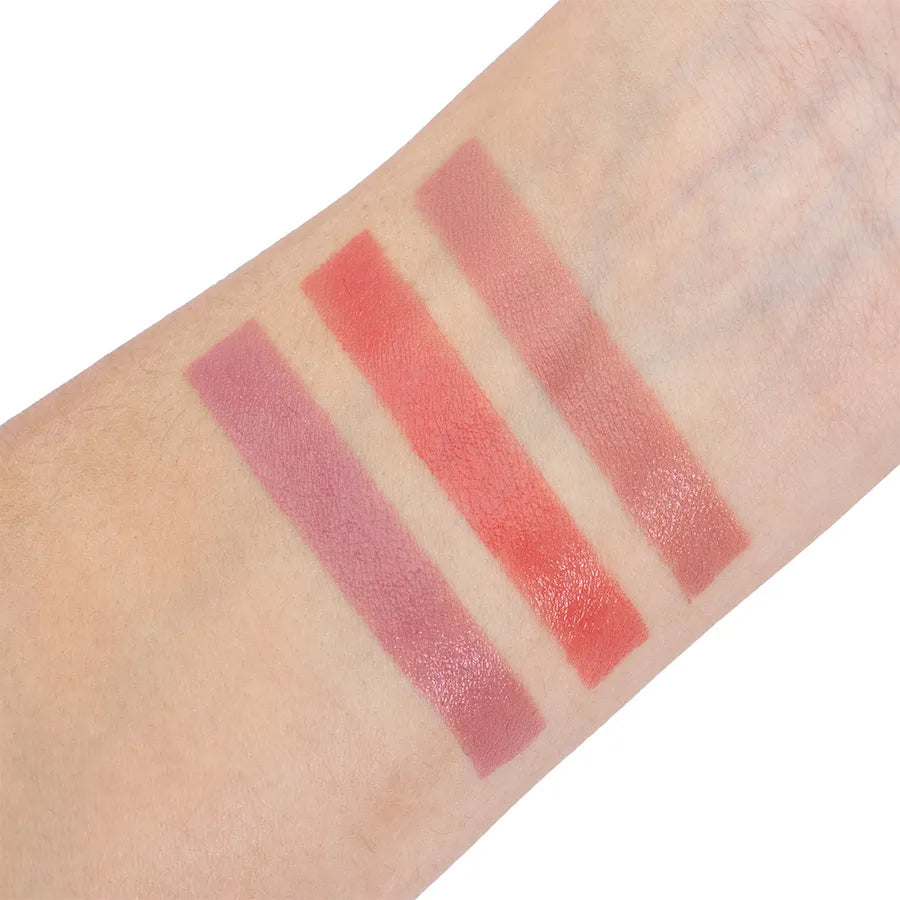 Incluye 3 tonos versátiles que se adaptan a todos los tipos de piel: un coral oscuro, un violeta suave y un rojo vibrante, perfectos para crear distintos estilos según tu estado de ánimo. Su formato compacto y precioso lo convierte en un must-have para quienes aman lo práctico, bonito y funcional.