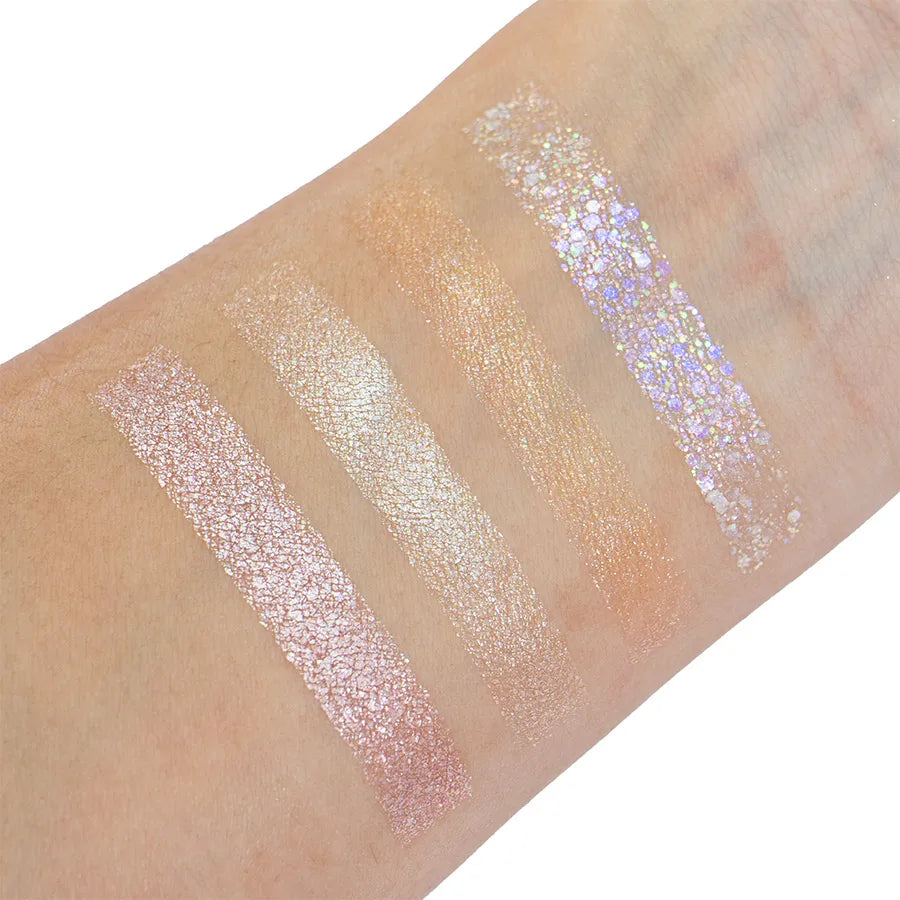 Sus tonos varían entre dorado, rosa y tornasol, adaptándose a cualquier estilo o tono de piel. ¡El combo perfecto para brillar de día y de noche!