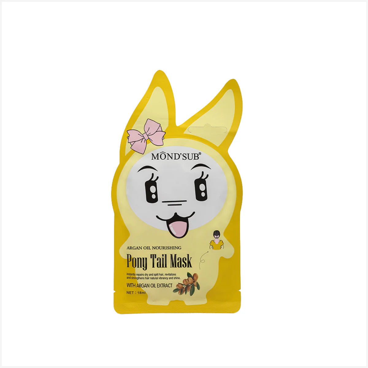 Devuélvele vida y brillo a tu cabello con la mascarilla capilar Mond’Sub Pony Tail Mask. Enriquecida con aceite de argán, esta divertida y efectiva mascarilla nutre en profundidad, repara puntas secas y fortalece la fibra capilar. Su fórmula hidratante ayuda a revitalizar el cabello apagado, dejándolo suave, manejable y con un brillo natural. Ideal para cabellos largos o con daño por calor y tintes. Su contenido es de 18 ml. ¡Cuida tu cabello mientras te diviertes!